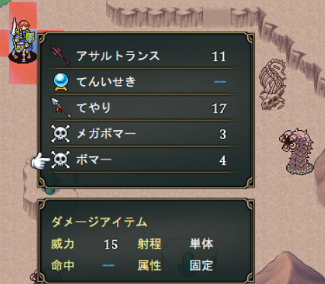ここまでアンリやウェリントンの負傷がない場合は、「メガボマー」や「ボマー」を持たせてフリーマップに行き、負傷させた状態でクリアするとよいでしょう。