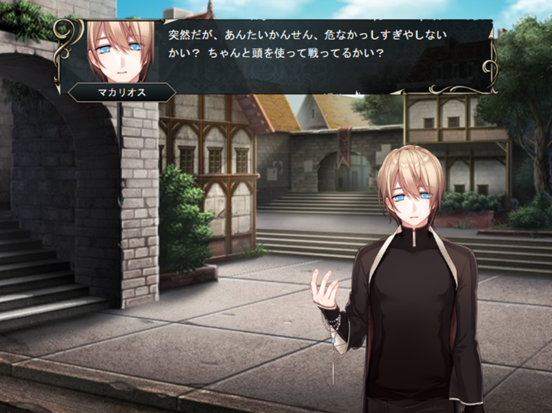 - マカリオス:「負傷者がいる状態でマップクリア」を3回以上した後、昼間の城下町を訪れる