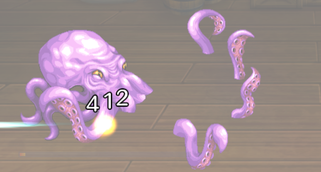 クラーケンはHPが半分以下になると胴体と足4本に分かれます。